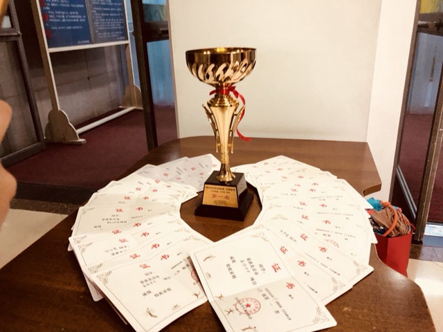 本次王娟老师带队的校艺术体操队由7名队员出征比赛,参加了本次大赛艺术体操集体纱巾、艺术集体操、四级绳三个项目赛事角逐。在一个月准备时间内队员们克服种种困难,学习三套全新动作,每周保持数十小时以上练习量,高标准、严要求,以精益求精的精神一遍遍的练习每一个动作,努力达到动作熟练自如与体操器械融为一体境界。赛场上,队员们柔美优雅、热情洋溢,在不同风格的体操项目中切换自如,以优美的舞姿、出彩的表演征服全场,最终取得艺术体操集体纱巾项目第一名、艺术集体操第一名、四级绳第一名、团体总分第一名骄分成绩。