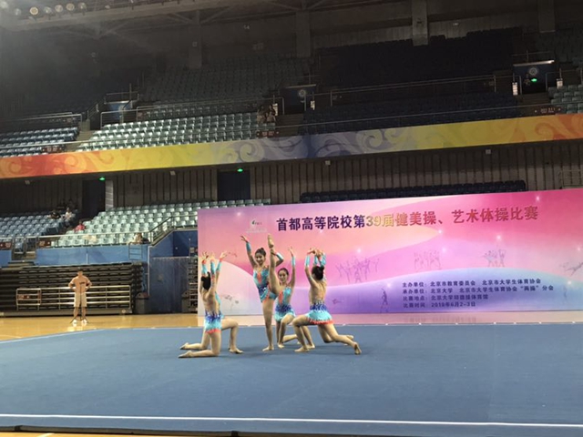 6月2日,2018年首都高校第39届健美操、艺术体操比赛在北京大学邱德拔体育馆举行。本次比赛由北京市教委、北京市大学生体育协会主办,由北京大学、北京市大学生体育协会“两操”分会承办。我校由体育部王娟老师带队的校艺术体操队出征本次大赛,取得艺术体操大学组团体总分第一名骄人成绩,创造了我校艺术体操队在该项比赛中的连续三连冠佳绩,实现了校艺术体操队新的突破。
