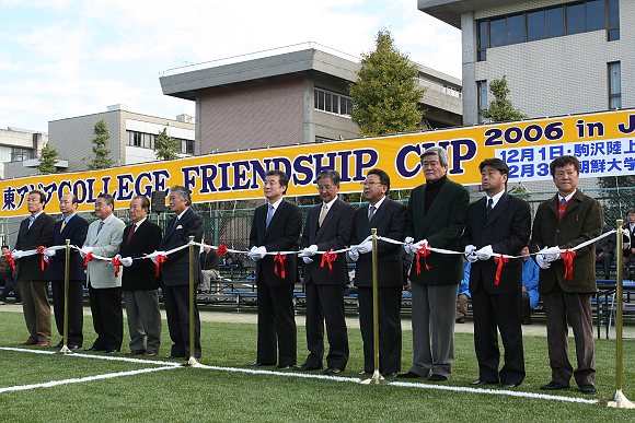 12月3日上午11:00,首届东亚大学生足球邀请赛决赛及闭幕式在东京的朝鲜大学校体育场举行,现场同时还举行了为迎接朝鲜大学校建校50周年而刚刚修建完成的体育场的启用仪式。