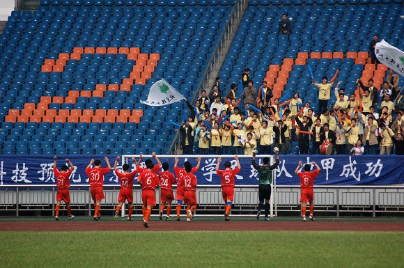 直至终场哨响,比分依然保持为1:1,北理工球员集体向全场不断辛苦呐喊的球迷致以敬意。