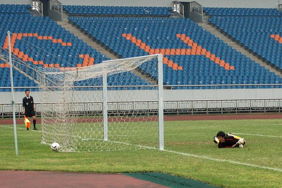 无奈球速太快,角度太刁,守门员也只好望球兴叹,鞭长莫及~~~
