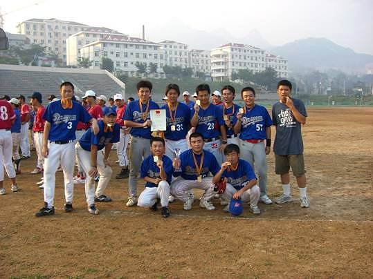 我校棒球队成立于2003年,自组队以来曾经三次参加本项赛事。2004年7月在广州举行的第一届比赛中,我校棒球队获得了季军;2005年在郑州的第二届全国联赛,我校棒球队获得了亚军;在今年的第三届全国大学生棒球联赛中,我校棒球队没有辜负学校领导和广大师生的期望,以全胜的优异战绩一举夺魁,为我校争得了荣誉。