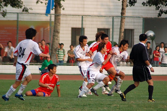 8月26日下午4点,我校足球队迎来了2006全国职业足球乙级联赛下半程的第二场比赛,在主场迎战目前排名北方赛区第四的哈药毅腾队,最终对手在裁判的“关照”下与我方以0:0战平,双方各取1分。哈药毅腾队在今年乙级联赛开赛之前就是呼声极高的所谓“冲甲”热门队伍,但其在比赛中的各种表现却不时让人大跌眼镜。在上半程我校足球队客场与其的比赛中,该队队员的踢法就已经让人不敢恭维(点击进入相关链接),这次比赛部分场面更是令人匪夷所思,看来中国足球无论是球员还是裁判都离足球大国的地位还有相当远的路程。
