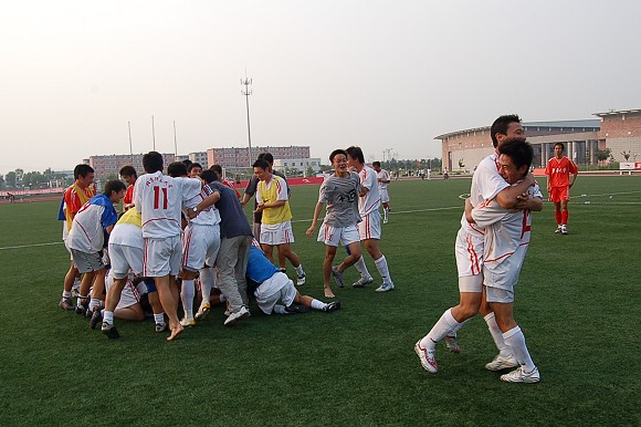 在另外一场半决赛中,太原理工大学足球队与山东大学足球队同样战的难解难分,90分钟内也战成了1:1平,在最后的点球决战中,太原理工大学足球队技高一筹,最后以4:2的总比分将山东大学足球队淘汰出局,成为了今年大学生足球联赛中一匹最黑的黑马。7月8日下午,我校足球队将与太原理工大学足球队进行最后的决战,三届冠军与最大黑马到底鹿死谁手,请大家拭目以待。