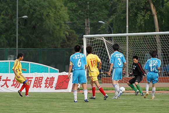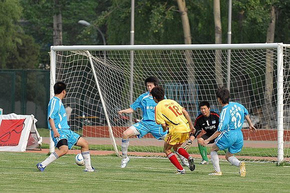 昨天下午,北理工在北航体育场迎来了第六轮客场与北航足球队的比赛,身穿黄色球服的北理工队的精神面貌和拼劲与前几场比赛完全变了个样子,继上半场以1:0领先之后,下半场再入4球,最终以5:0战胜了北航足球队,展示了其真正实力,也为本周末中甲联赛北理工一队主场迎战江苏舜天开了一个碰头彩!