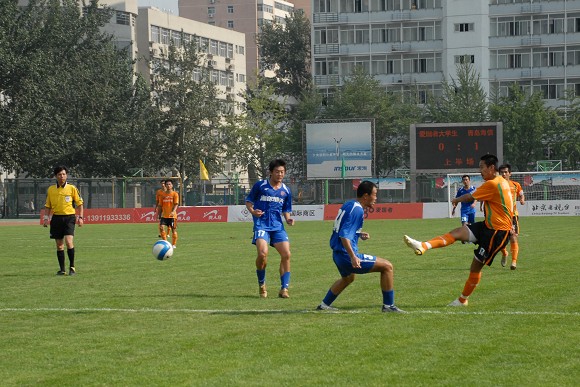 此后,青岛队进攻势头不减,而爱国者大学生也踢出状态,双方在中场拼抢十分激烈,第21分钟,爱国者队在青岛队门前造成险情,爱国者队前锋单刀面对门将,可惜被青岛队及时破坏,球稍稍偏出球门。