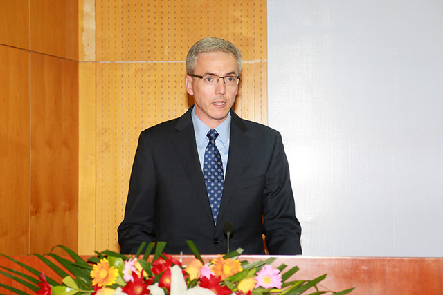 我校常务副书记赵长禄教授在致辞中对典礼的举行表示热烈祝贺。他表示,中国已进入经济快速发展的黄金时期,亟需高级人才来搭建中外合作的桥梁。我校与康斯坦斯应用科学大学合作为戴姆勒公司举办的EMBA项目以传授国际上最高道德和法律标准进行商业活动为指导方针,培养了大批具有国际化视野的高层次复合型精英人才。合作的成功与合作方的大力支持,教职工的辛勤工作和学员的积极努力密不可分。