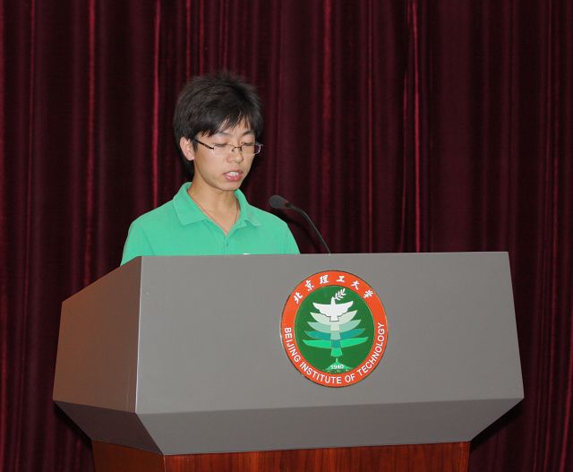 2010级新生代表伍睿骞同学代表全体新生表达了要严于律己、养德修身 、勤奋刻苦、立志创新、勇于实践和报效社会的决心。