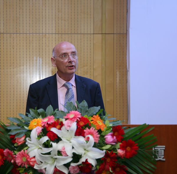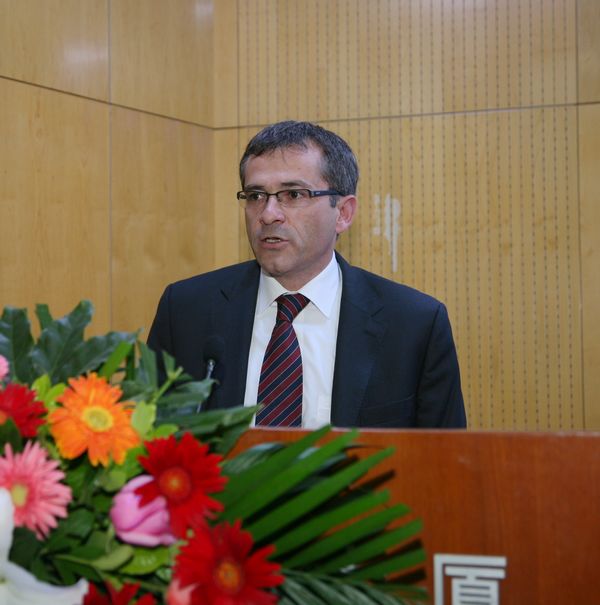 德国康斯坦斯应用科学大学Josef Wieland教授致辞。他说:戴姆勒公司选派员工参加EMBA项目的学习,是最明智的一项人力资源投资,它将给戴姆勒企业的可持续性发展提供潜在的智力支持。他引用了中国的孔子的话,“吾十有五而志于学,三十而立,四十而不惑,五十而知天命”。 并告诫学员:学习是一项终生的事,要“活到老学到老”!