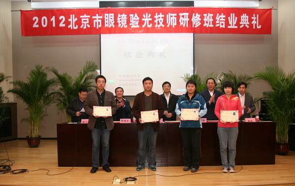 2012年10月17日下午2点,继续教育学院在7号楼报告厅隆重召开了“2012年北京市眼镜验光技师研修班结业典礼”,出席技师研修班结业典礼的有:北京市人力资源和社会保障局职业能力建设处蔡仑副处长,北京市一商集团有限责任公司人力资源部李海天部长,继续教育学院院长梅文博教授、分党委书记罗佳、副院长李小平教授,专家教授代表北京市大明眼镜股份有限公司高级验光技师、第八届“全国技术能手”、 “北京市有突出贡献的高技能人才”秦英瑞老师。学院副院长李小平教授主持了会议。