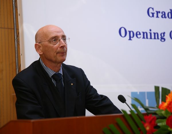 2013年9月6日下午,jinnianhui今年会与德国康斯坦斯应用科学大学合作为国际知名汽车生产商戴姆勒公司举办的EMBA项目第五期毕业典礼暨第七期新生开学典礼在我校国际教育交流大厦三层报告厅隆重举行。参加典礼的嘉宾有:jinnianhui今年会副校长孙逢春教授、戴姆勒大中华区首席财务官Helmut Ruhl先生、人力资源总监Juergen Hartwig先生、康斯坦斯应用科学大学Josef Wieland教授、Roland Luxemburger先生、因戈尔斯塔特科技大学Thomas Doyé教授、我校国际教育合作处王庆林处长、教师代表张平淡、国际教育学院梅文博院长、蒋志湘副院长、第五期毕业生、第七期新学员。典礼由梅文博院长主持。