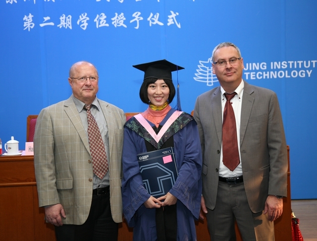 国际教育学院蒋志湘副院长首先宣读了32名毕业生名单, Hortsch 教授和Kersten博士为毕业生颁发德累斯顿工业大学职业教育与人力资源开发文学硕士学位证书并一一合影留念。