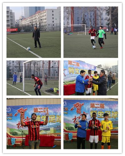 校党委书记赵长禄为比赛开球。本次赛事共有教工、留学生和中国学生三支球队参加。按照赛制,三支球队捉队厮杀两两交手。经过激烈角逐,教工队以两战全胜的成绩获得冠军,留学生队点球惜败于教工队、以一胜一负的成绩获得亚军。此外,比赛还评出多个单人奖项。