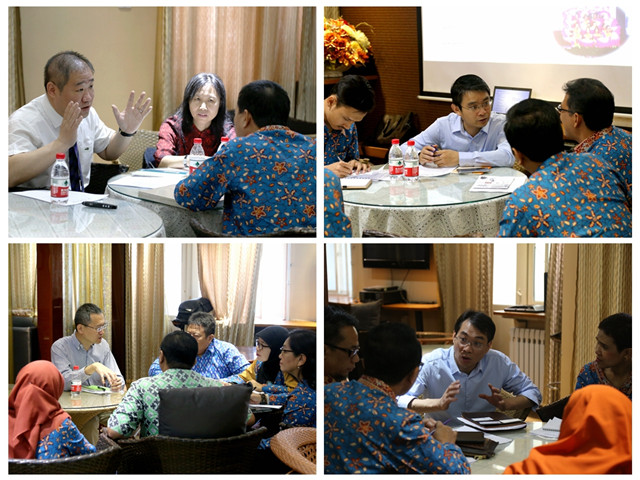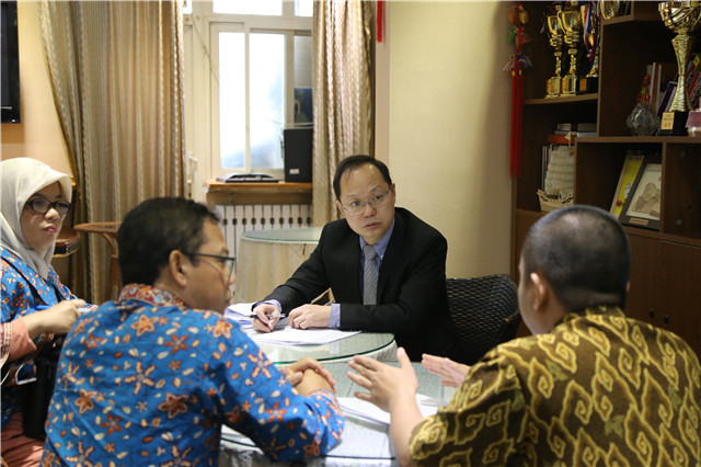 墨邱布安南大学教务处HADRI MULYA DAHLIAR副主任对汪滢的介绍表示了感谢,此行代表团包括通信科学学院、电子工程学院、计算机学院、机械工程学院及管理学院各位院领导和讲师。通过与北理工相应学院院领导的探讨,将进一步扩展本科双学位的专业领域,促成硕士1+1双学位的可能性以及探讨了教学管理模式。
