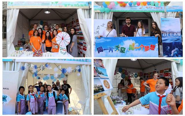各国展台前,来自异域的珍馐美馔让大家通过“舌尖上的世界”了解了各国的多彩文化和独特魅力;传统服饰、手工艺品和趣味游戏纷纷精彩亮相,让大家不出校门就能尽览各国风土人情。中外师生员工、中小学生和学龄前小朋友们,流连于一个个眼花缭乱的展台前,穿行在一片片欢歌笑语的海洋中,不同的语言、肤色、国籍、年龄在这里交流,心与心在这里交汇,五洲文化在这里交融。