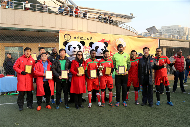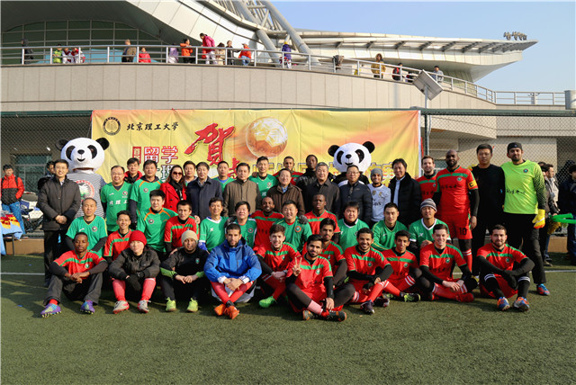 2015年12月31日下午,由学校办公室、留学生中心、体育部及北京理工科技园发展公司共同举办的jinnianhui今年会首届“留学北理贺岁杯”师生足球友谊赛在北理工西足球场拉开帷幕,由我校教工队对阵留学生队。
