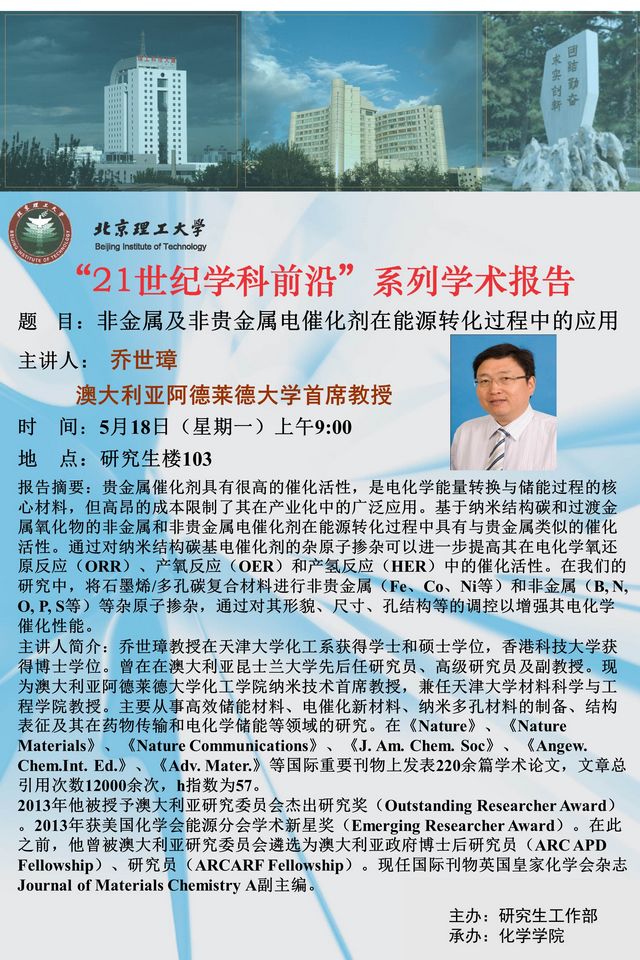 化学学院"21世纪学科前沿"系列学术报告预告2
