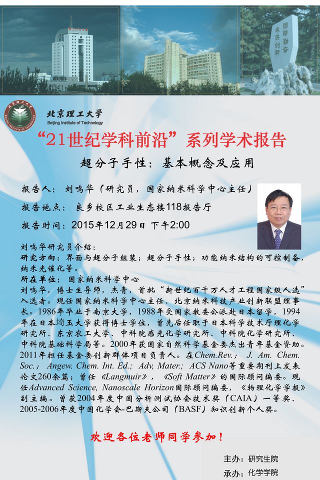 【化学学院】“21世纪学科前沿”刘鸣华研究员学术报告通知
