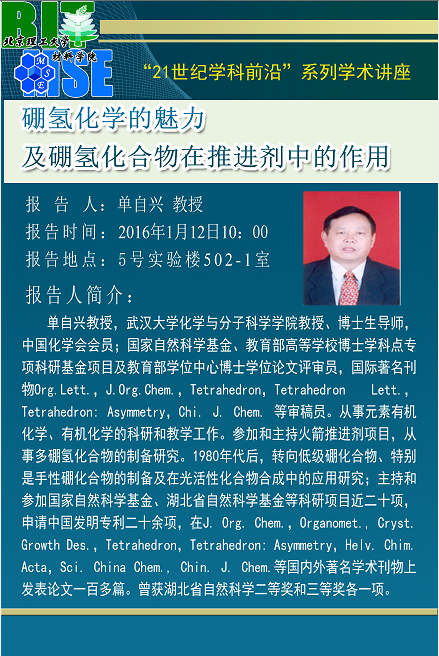 【材料学院】“21世纪学科前沿”单自兴教授学术报告通知