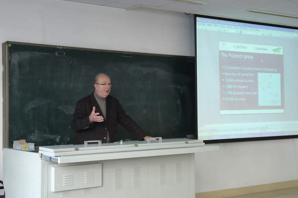 2009年11月17日下午2:00在信息楼3010教室,学校教务处组织召开了“法国工程师教育体系及法国大学图尔工程师学院项目”讲座,由来自法国的GuyREGNIER先生主讲。GuyREGNIER先生是法国国家教育部、法国科学院、欧盟及国际事务合作部秘书长,PolytechGroup法国图尔大学工程师学院国际交流项目代表。