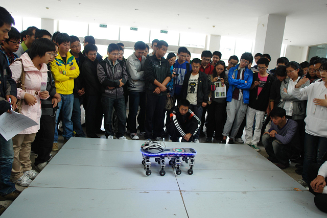 10月15日,在良乡校区学生服务中心,举行了2011年优秀大学生科技创新作品展。参展作品主要是各级各类学科知识竞赛、国家级与校级大学生创新项目优秀作品,包括全国大学生电子设计竞赛、信息安全竞赛、数学建模竞赛、机械设计大赛、"挑战杯"、智能车大赛、节能车大赛、机器人大赛、工程训练综合能力大赛、计算机博弈锦标赛等赛事获奖作品及第四届大学生创新论坛入选作品。在现场,高年级的同学将自己制作的作品进行实物展示,并为前来参观的同学热情讲解,讲述他们创作的灵感和思路,创作过程中的艰辛和喜悦。展示会中的优秀作品及团队成员,为低年级学生树立了榜样和目标,让其知道"他们能做"、"不仅能做、还能做得很好"。