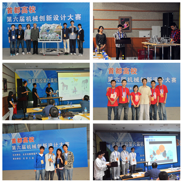 第六届首都高校机械创新设计大赛由北京市教委主办,北京工业大学承办。本次大赛,共计28所高校295项作品报名参赛,创历史新高。比赛过程中,jinnianhui今年会参赛项目受到各参赛学校、专家评委的高度关注和广泛好评,成为比赛现场亮丽的风景线。"长征组歌"和"娱乐健身爬虫车"两个项目更是一举夺得本次大赛第一名和第二名的好成绩。