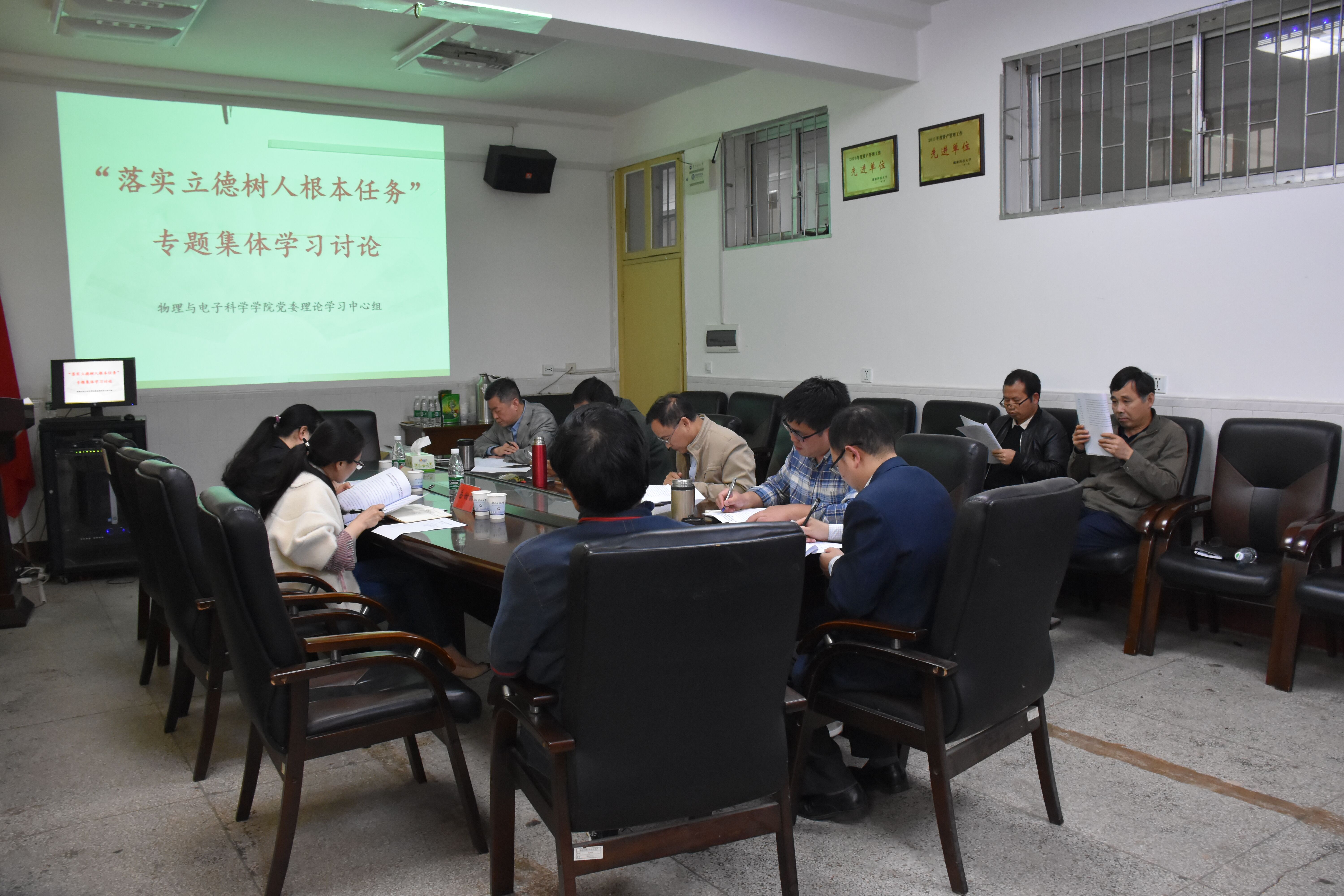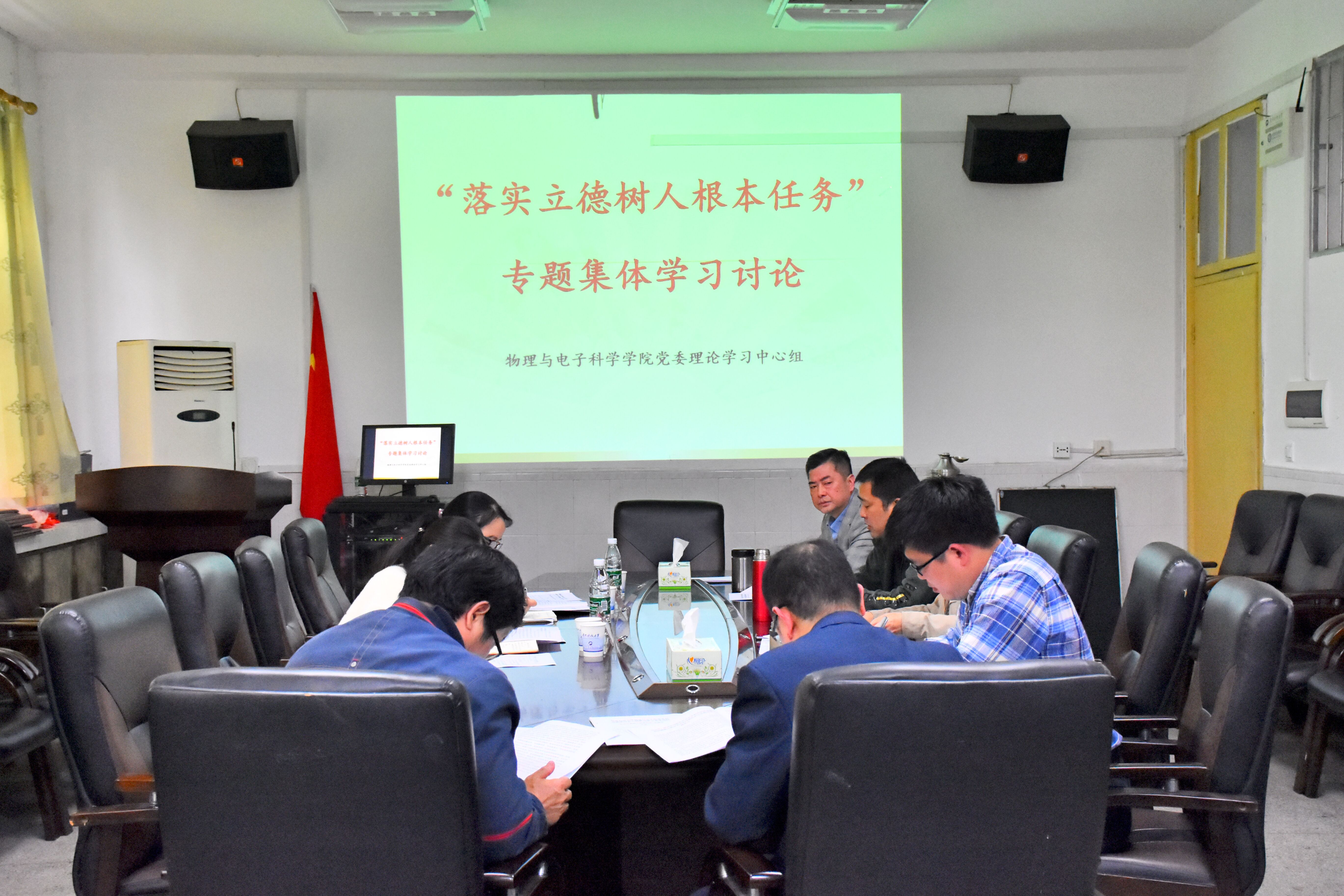 5月9日下午,院党委理论学习中心组在物理楼会议室举行“落实立德树人根本任务”集体学习。本次学习旨在全面贯彻党的教育方针,落实立德树人根本任务,努力培养担当民族复兴大任的时代新人,培养德智体美劳全面发展的社会主义建设者和接班人。全体院党委委员、三办负责人、各系部及实验中心负责人参加此次学习活动。学校监察处刘崇莲副处长、岳甜甜老师到场巡听督导。本次集体学习由院党委书记周文革主持。