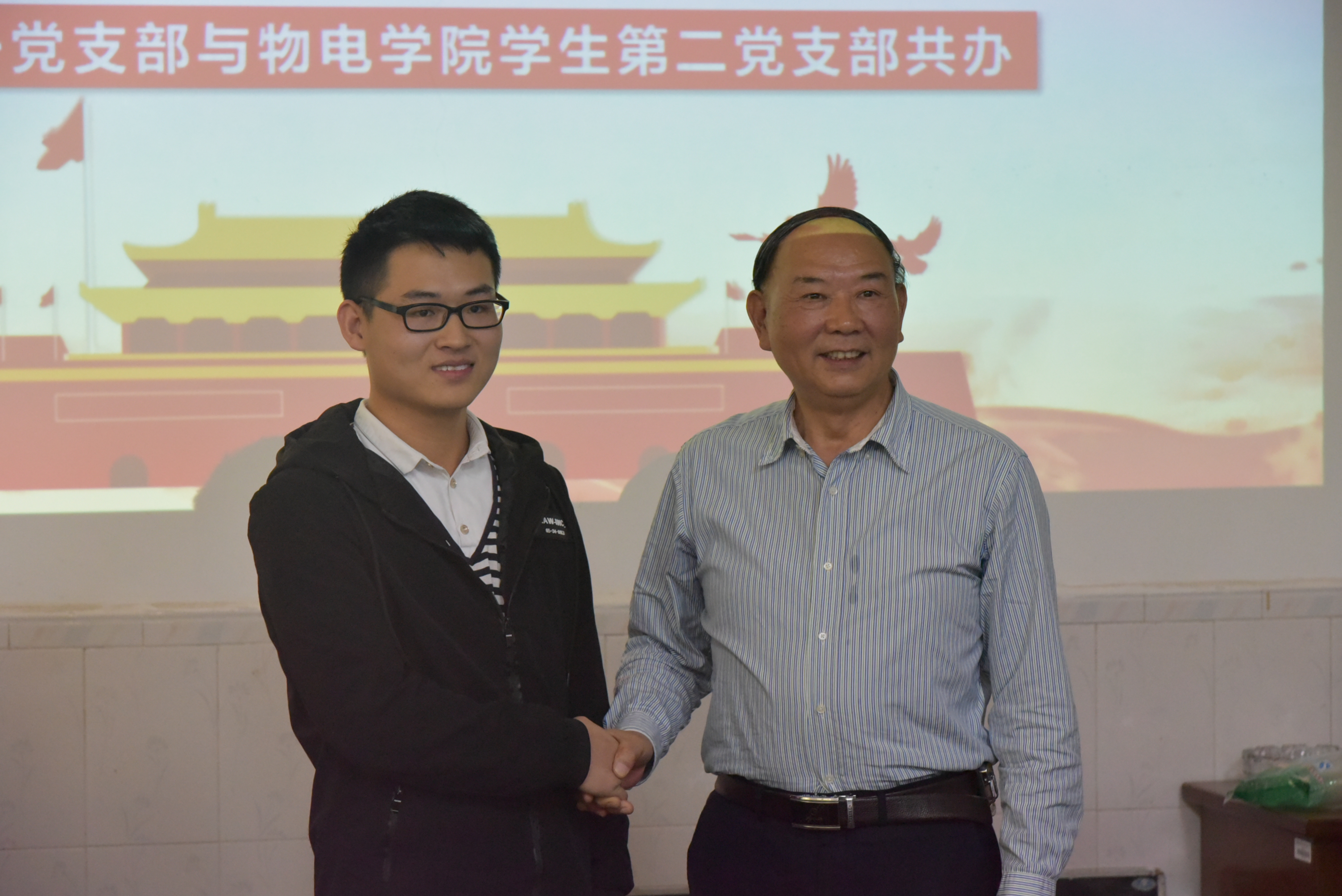 会议进行第二项议程,我校原正校级督导刘绍明为与会党员讲了主题为“纪念改革开放40年,不忘初心,永远跟党走”的党课,从“衣、食、住、行”四个方面举实例讲述了近40年来中国社会的发展变化,告诫大学生党员同志们一定要记住共产党员的关键词:“有觉悟”、“有本领”、“有作用”,不忘初心,永远跟党走,时刻发挥先锋模范带头作用。仪式最后,学生第二党支部党员与离退休处第十一党支部党员合影留念,并欢送老党员。