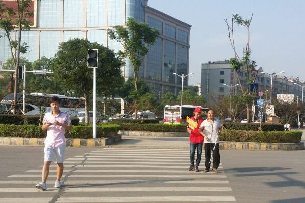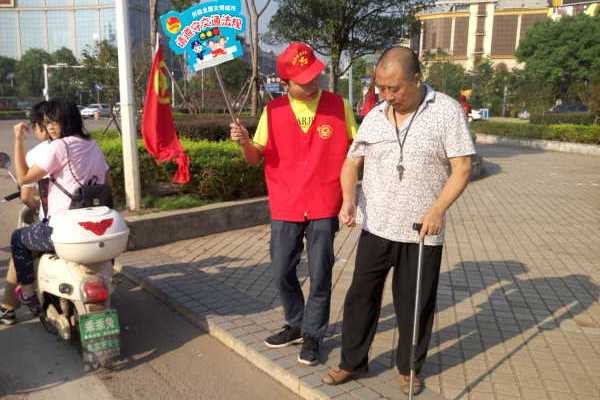 上午八点,我们的志愿者准时到达护潭广场,穿着醒目的红色马甲,站在每个路口,为行人导航。人来人往的人行道,总会有闯红灯的现象发生,但是经过我们志愿者的劝导,这种现象,明显改善许多。