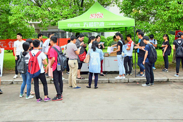 七区路口旁竖立着八块宣传牌,它们通过诚信还款、征信知识竞答、实例介绍三个部分详细介绍了办理国家助学贷款的申请、还款、续款等流程,旨在在我校普及助学贷款常识同时提高同学的诚信意识。摆点活动地点热闹非凡,有的拿着笔在红幅上签着自己的名字,有的拿着毛笔在折扇上写着有关诚信的名言,风趣幽默的绕口令更是吸引了许多人前来驻足。同学们通过参加有关诚信以及诚信贷款知识的有奖竞答小游戏了解到了助学贷款的常识以及提高了诚信为人的意识。