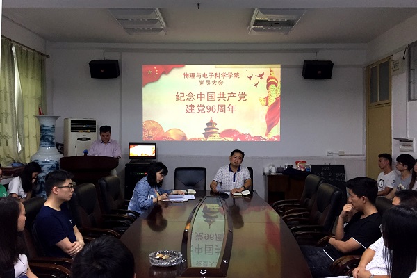 为纪念建党96周年,2017年6月30日下午4:30,kaiyun开云官方党员大会于物理楼二楼会议室顺利召开。本次大会到场的有kaiyun开云官方党委书记周文革同志、党委副书记杜鑫同志、学工办老师孙婵老师,以及kaiyun开云官方五十七名学生党员。党委副书记杜鑫同志主持本次会议。