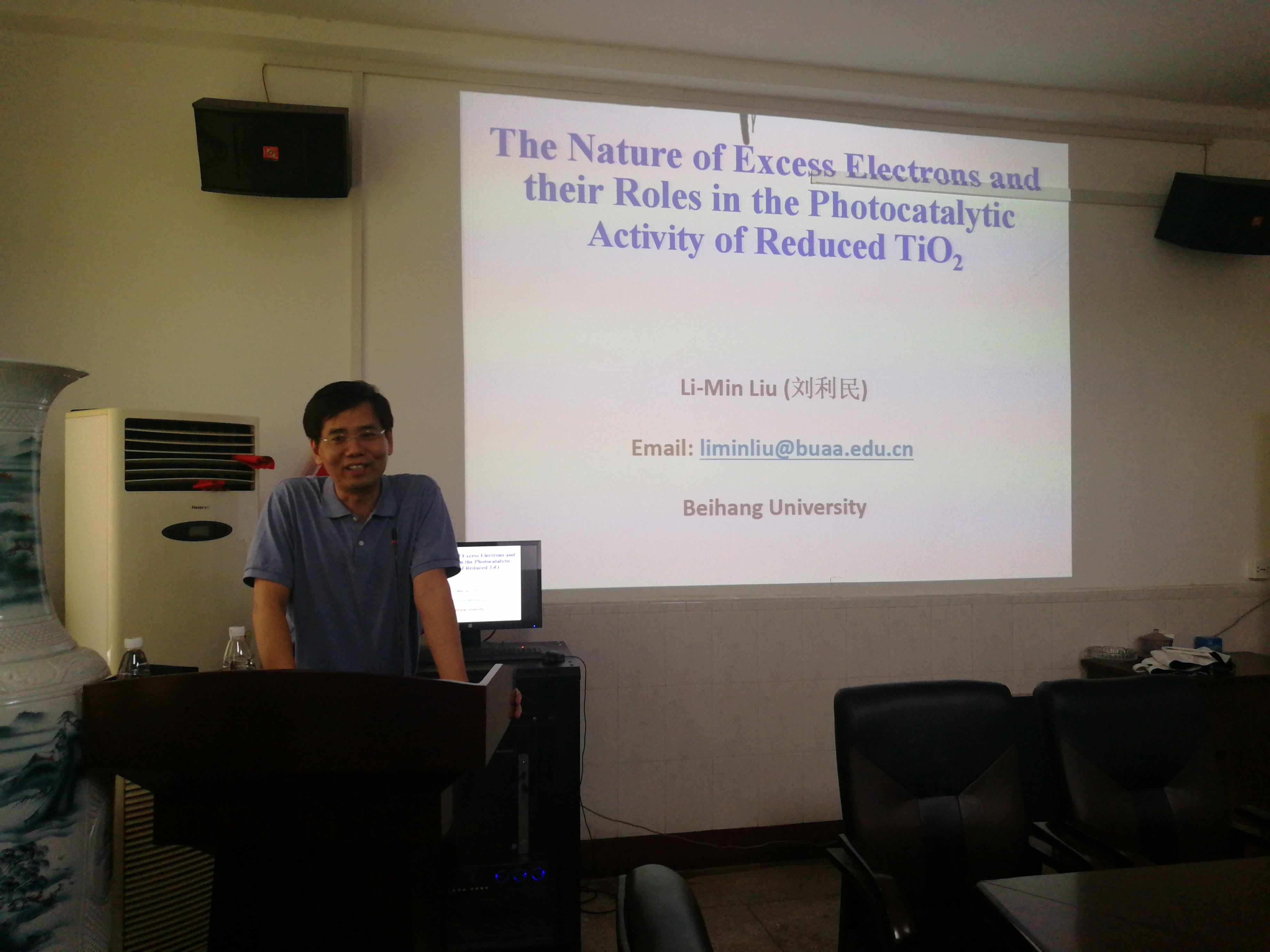 9月14日下午14:30,国家优秀青年科学基金获得者、中组部“青年千人计划”入选者、北京航空航天大学物理学院刘利民研究员,应邀在kaiyun官网物理楼213作了关于“二氧化钛光催化活性的影响”的学术报告。kaiyun官网部分教师以及全体研究生参加此次报告会。