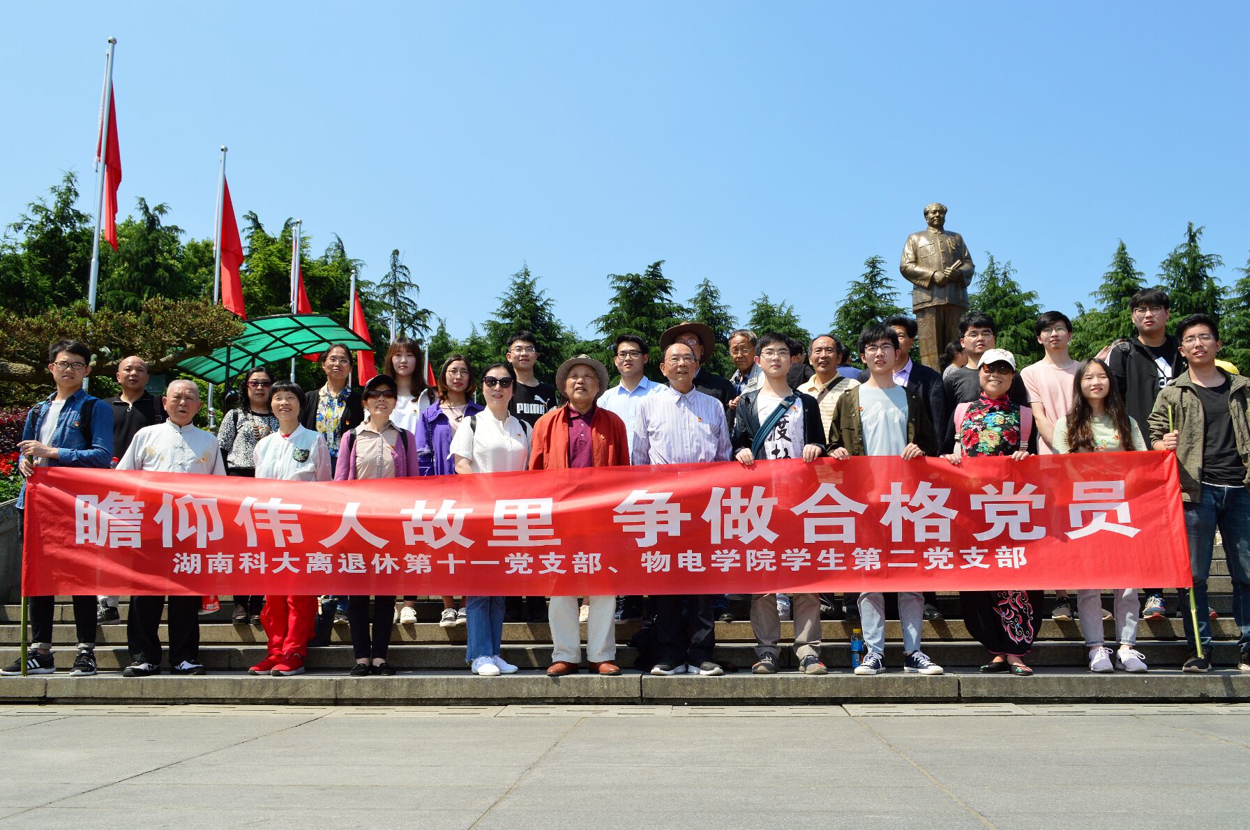 为庆祝中华人民共和国成立70周年,扎实开展“两学一做”教育实践活动,有力推进党组织“五化”建设,5月11日,kaiyun开云官方组织学生第二党支部与校离退休第十一党支部前往韶山开展主题为“瞻仰伟人故里,争做合格党员”的联合党日活动。