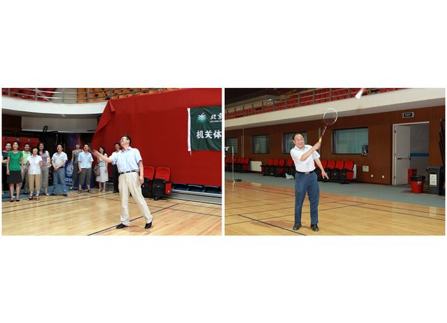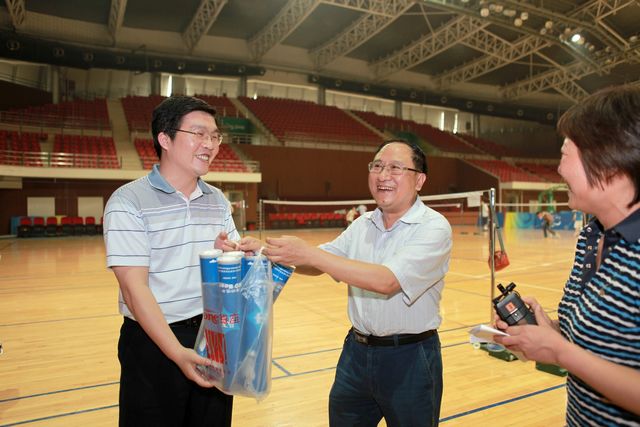 最后,赵平副校长和张建军副主席为羽毛球队开球,标志着机关体育协会正式成立。