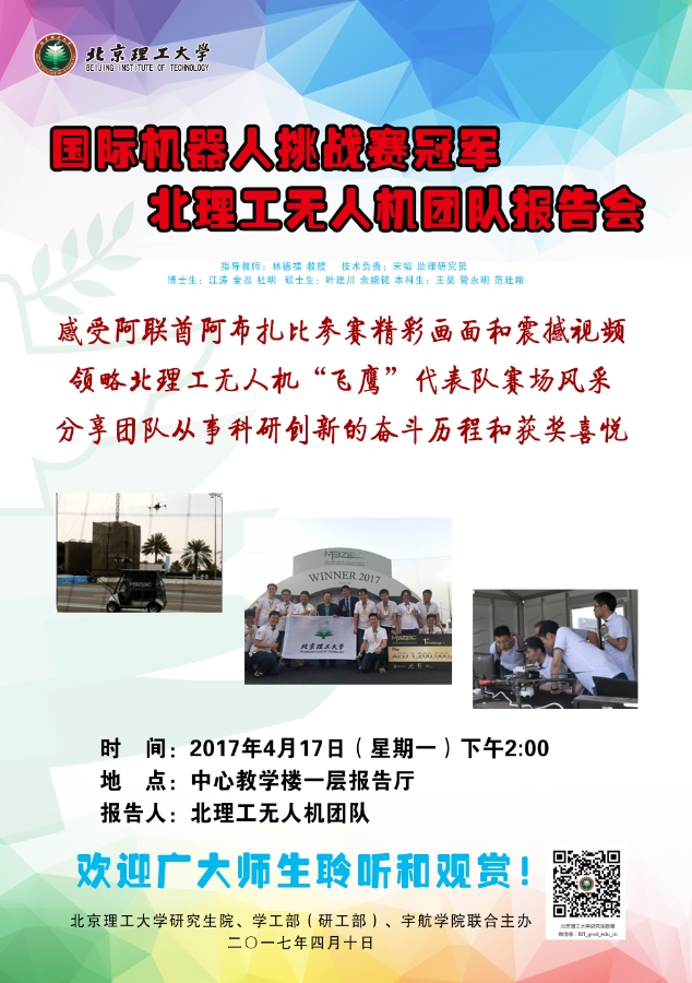 > [报告会]国际机器人挑战赛冠军北理工无人机团队报告会