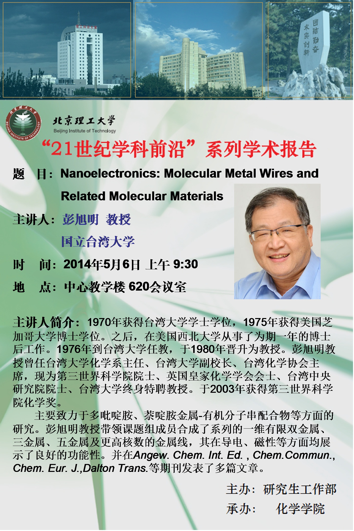 化学学院“21世纪学科前沿”彭旭明院士学术报告预告