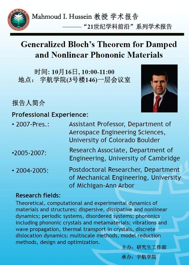 宇航学院10月16日学术报告预告
