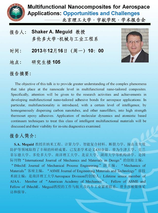 > 宇航学院12月16日学术报告预告