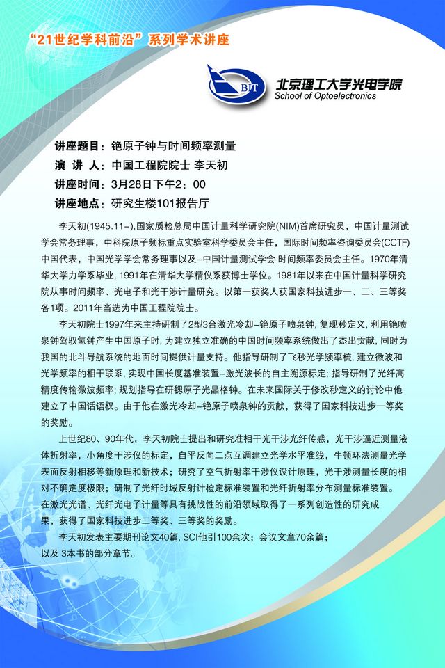 > 【21世纪学科前沿】光电学院3月28日学术讲座预告
