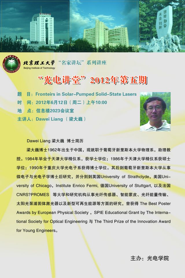 > 【光电讲堂】光电学院6月12日学术讲座预告