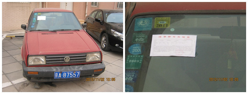 (软件楼北侧长期停放的车辆,车号:京A87557)