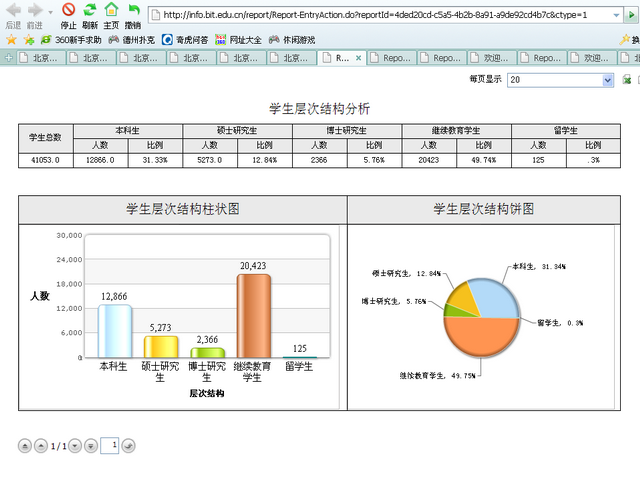 * 统计分析:以柱状图和饼状图形式显示各项数据组成结构