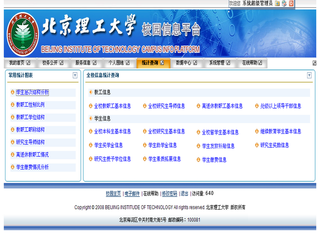 如各位用户对校园数字平台和中心数据库建设有任何意见、建议或需求,请您发送邮件至:sang2000@bit.edu.cn,我们将竭诚为您服务。
