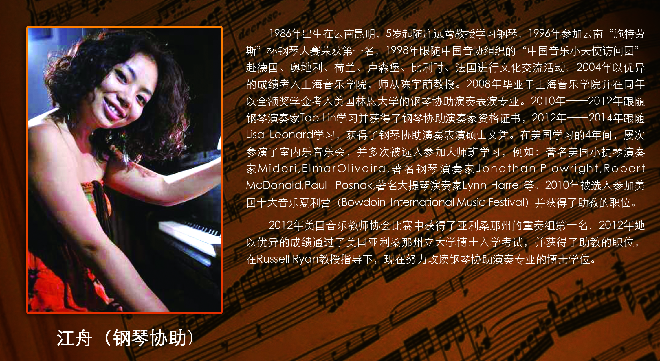 美国亚利桑那州立音乐学院 蒋丹文(教授)、 江舟(钢琴协助)、李源淼、刘舒、黄湘媛。