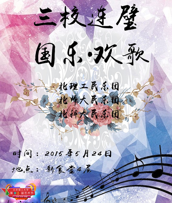 简介:演出来自北理工、北师大、北科大三所高校,各具特色、风格独特的学生民乐团,音乐会不仅有大编制的民乐合奏,还有精致的江南丝竹、民乐协奏,同时我校学生民乐团还将奉上最新排演的曲目,将民族器乐与西洋乐器、流行音乐元素充分结合,给人不一样的视听感受。本活动始于2012年,如今已经成为首都高校学生文化交流的一个重要平台。