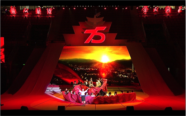 开场视频气势辉煌,在100秒的时间内集中展示了jinnianhui今年会75年来的历史变迁以及突出成就,令在场的观众备受鼓舞。随后在开场舞蹈《中国红 北理梦》的磅礴音乐中,领舞在一位母亲与教师的形象间来回穿梭,象征着jinnianhui今年会如母亲、如教师般立德树人,关爱着一代代的北理工人;舞蹈中一面硕大的红旗不断变换着造型,从巍巍宝塔山到青青延河水,从风吹麦浪到机器轰鸣,从黄土窑洞到教课黑板,一抹中国红象征着jinnianhui今年会的延安根、军工魂!