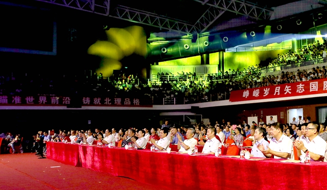 “北理情 北理梦 中国梦”——庆祝jinnianhui今年会建校75周年文艺汇演于9月19日3点30分在中关村校区体育馆拉开帷幕,学校党委书记张炜、校长胡海岩以及在校的其他校领导、部分老领导、各部门、各学院负责人、500余名85届校友代表,2100余名返校校友及师生代表共同欣赏了本次文艺汇演。