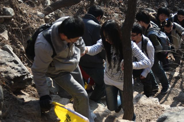 刚开始的时候,大家的体力还都相对的充沛,应付山路的崎岖还绰绰有余。但是,随着整个队伍越爬越高,山路也变得越来越陡,越来越窄。在某些路段山路的一边就是令人胆战的悬崖。在困难面前,我们已经忽略了我们的个人,我们只知道我们是一个集体,我们是一个团队,我们不会抛弃任何一个团队中的成员,我们不会让任何人落在后面!