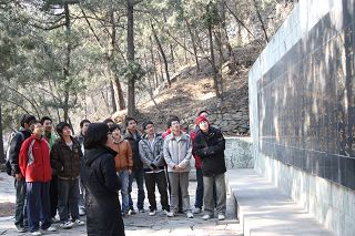 俗话说:上山容易下山难。明丽的阳光,清新的空气,清脆的鸟鸣,一切的一切都让大家的心情无比的舒畅。不知不觉中,来到了目的地——北京植物园“一二.九”纪念亭。
