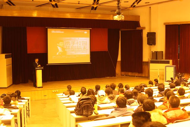 2009年12月14日晚,中国青年创业国际计划(YBC)青年创业导师、金和软件总裁栾润峰教授与北理工学子进行面对面的交流,主题为“怀揣梦想、踏实上路”的讲座拉开了就业、创业论坛的序幕。软件学院副书记、副院长陈旵明、学院就业办公室柳文艳老师出席了本次讲座。